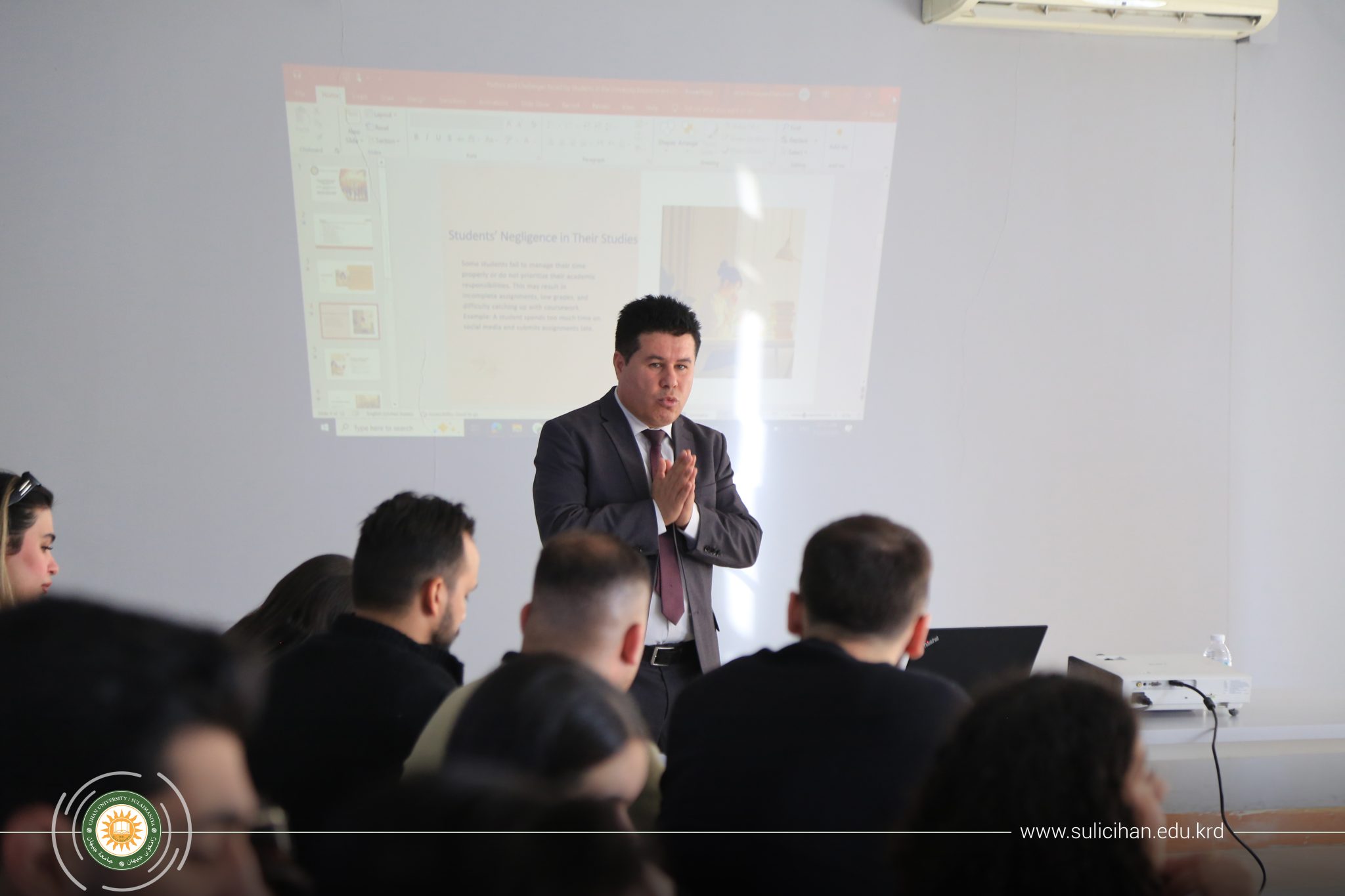 نظم قسم إدارة الأعمال في جامعة جيهان السليمانية بالتعاون مع قسم إدارة المشاريع في جامعة السليمانية، بتاريخ 22 تشرين الثاني 2025، ورشة عمل مشتركة قدمها الأستاذان الفاضلان سمير عبد الجبار من جامعة جيهان والأستاذ سوران حمه سعيد من جامعة السليمانية. كان عنوان الورشة “الأسباب والعوائق التي تواجه الطلاب في البيئة الجامعية” وتضمنت عدة محاور، منها: المشاكل الصحية، الإهمال في دراسة المحاضرات، مشاكل عدم الفهم، مشاكل الطقس والمواصلات، عدم توفر المستلزمات والخدمات، المشاكل المالية، العوائق التي تؤدي إلى الانسحاب، مشاكل الغياب ونقص المعلومات، وكذلك مشكلة ضعف التواصل لدى الطلاب بسبب الخجل أو الانطواء. لهذا الغرض، تم إجراء استبيان بين طلاب المراحل الثلاث في قسم إدارة الأعمال، وتبين أن الطلاب متفقون على وجود هذه المشاكل.