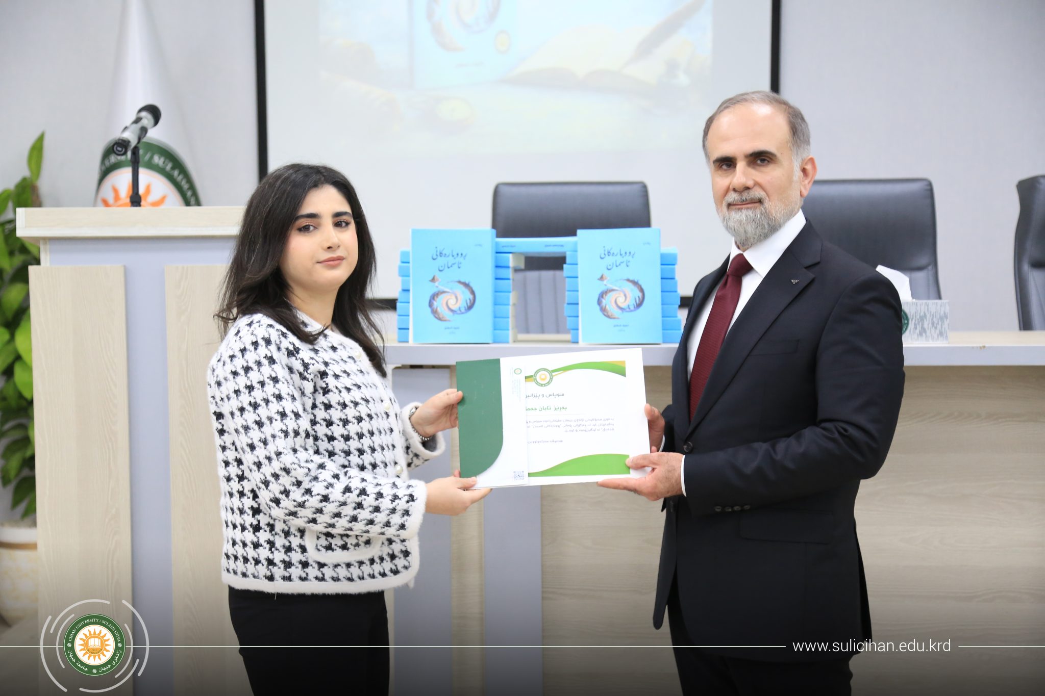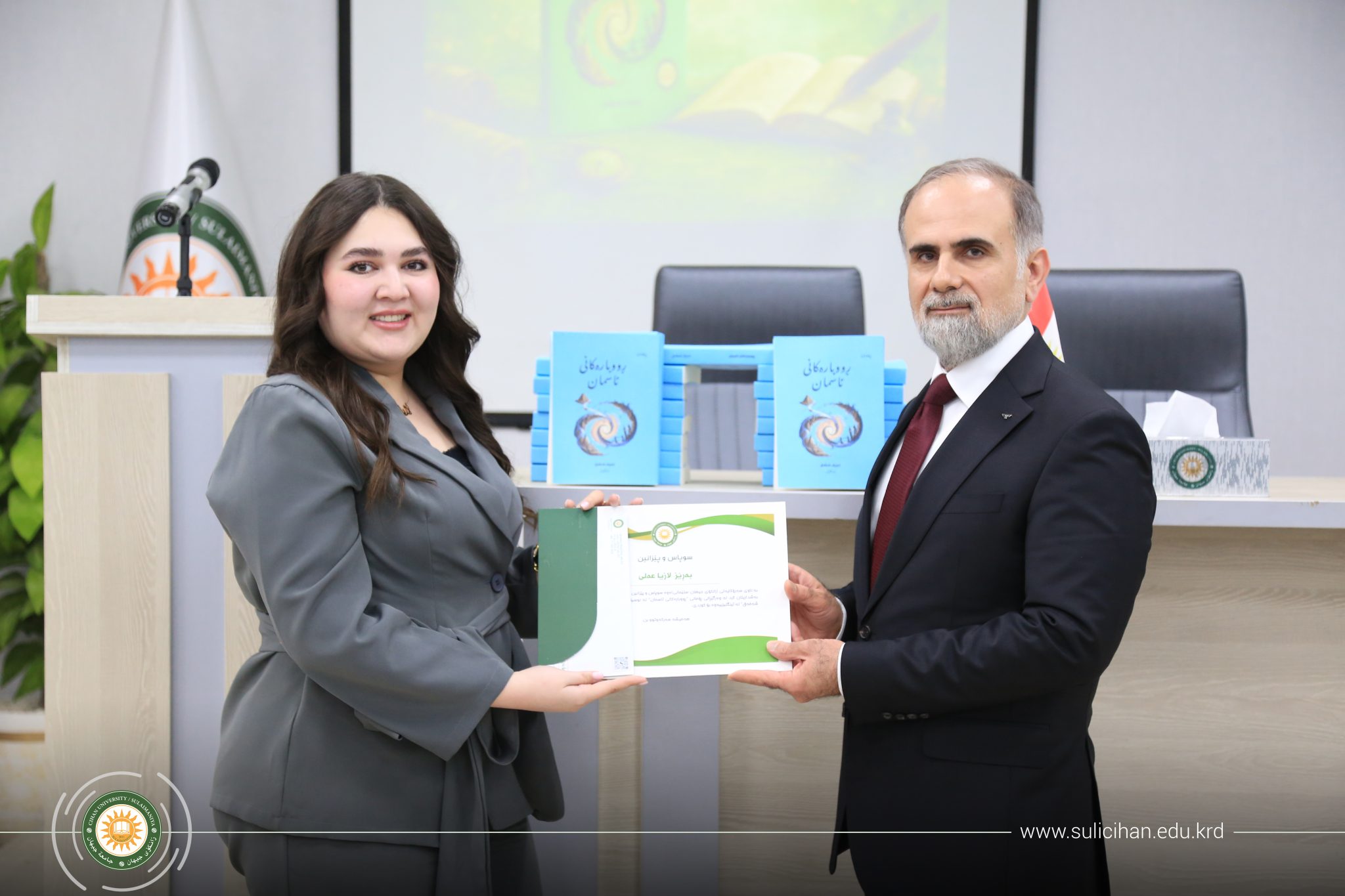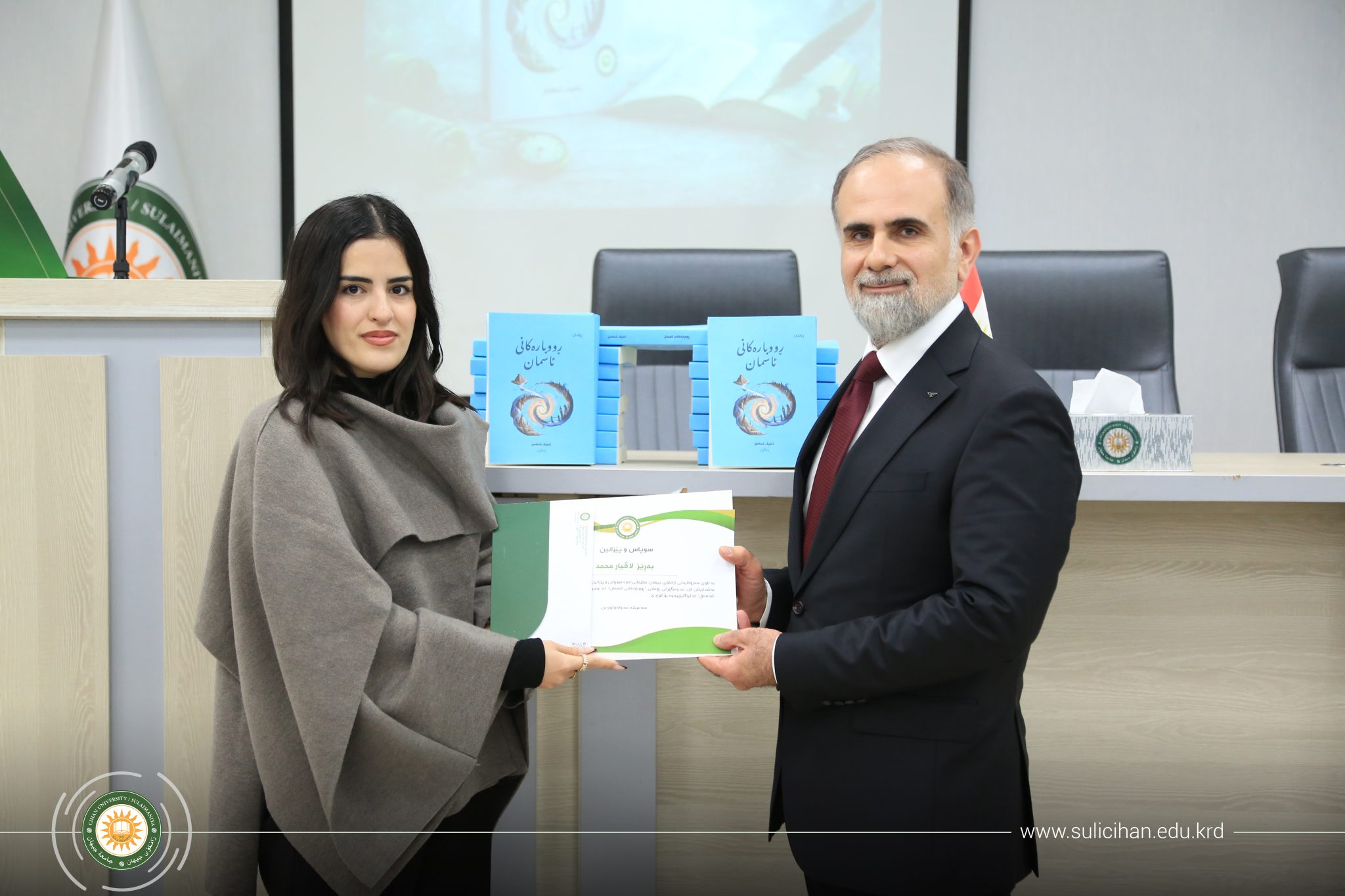 In alignment with the strategic goals of Cihan University-Sulaimaniya, a special ceremony was held on January 31, 2026, to introduce the Kurdish translation of the novel “Sky Rivers,” translated by a group of students and alumni from the Translation Department.