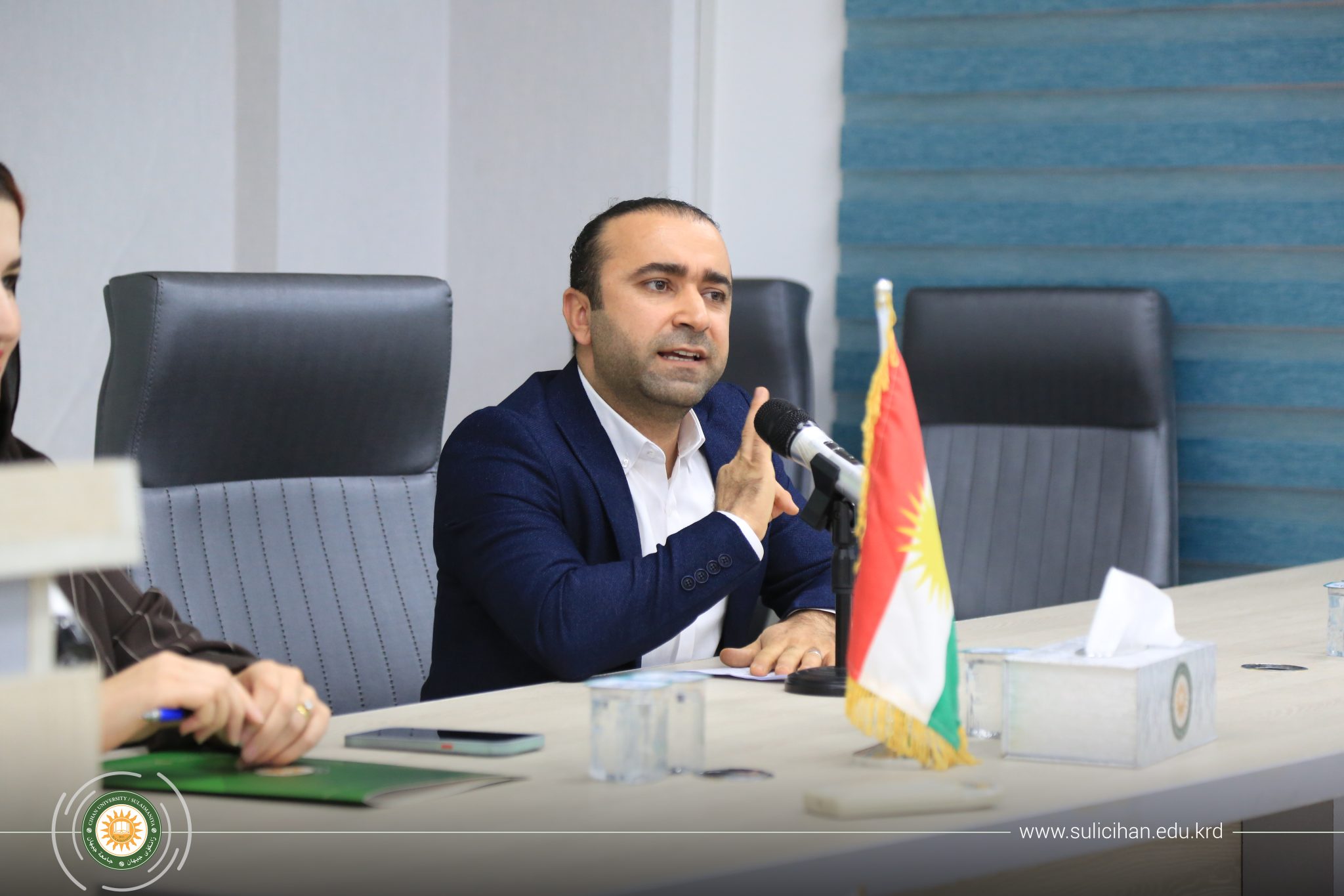 Dr. Peshew Majeed Nuri, a lecturer in the Translation Department at Cihan University-Sulaimaniya, then presented a topic on linguistic changes and the impact of foreign languages on Kurdish. He noted that while learning English is necessary for scientific development, preserving the mother tongue is the key to critical thinking and raising a conscious generation.