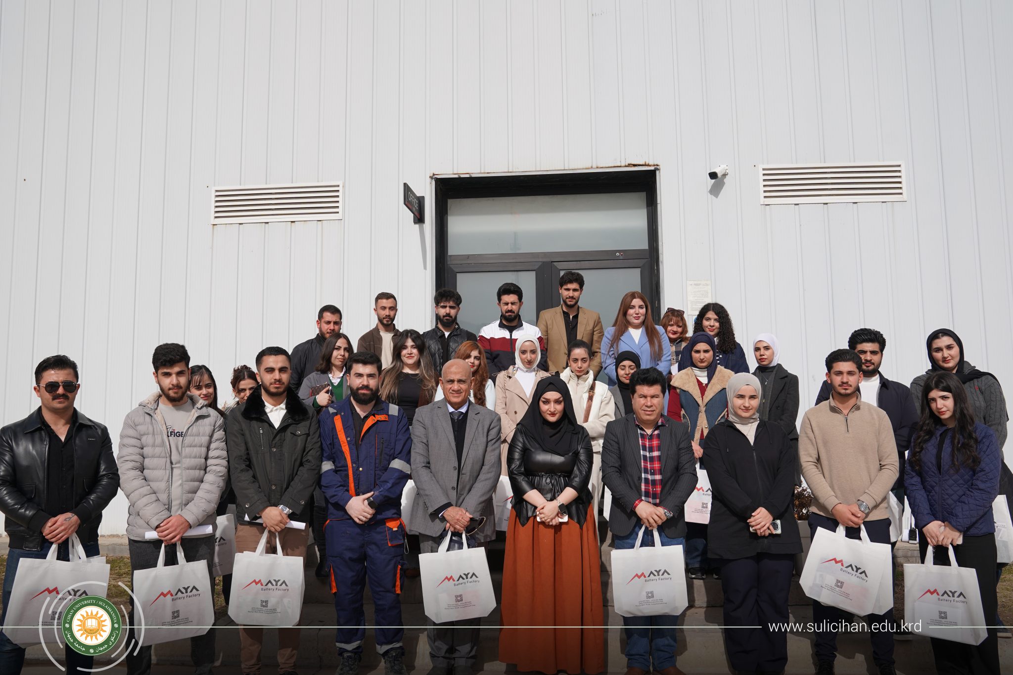 The Business Administration and Accounting Departments organized a scientific visit to Maya Battery Manufacturing Company, a subsidiary of Qaiwan Group, on Monday, February 2, 2026. The visit was for first- and second-year Business Administration students and first-year Accounting students. The students were accompanied by Lecturer Soran Hama Saeed and Assistant Lecturer Sameer Abdul Jabbar. The steps involved in battery manufacturing and the complete, scientifically documented recycling process were explained to the students in a comprehensive manner. It is worth noting that such practical visits have a significant impact as an educational tool, as they introduce students to production methods, operational processes, different levels of productivity, and sales development. During this visit, in line with scientific methods, concepts such as management, human resource management, warehouse management, sales, crisis management, and total quality management were explained to the students through seminars and field demonstrations. At the end of the visit, the students toured all sections of the battery production line, and the session concluded with a useful and scientifically organized lesson on the topic.