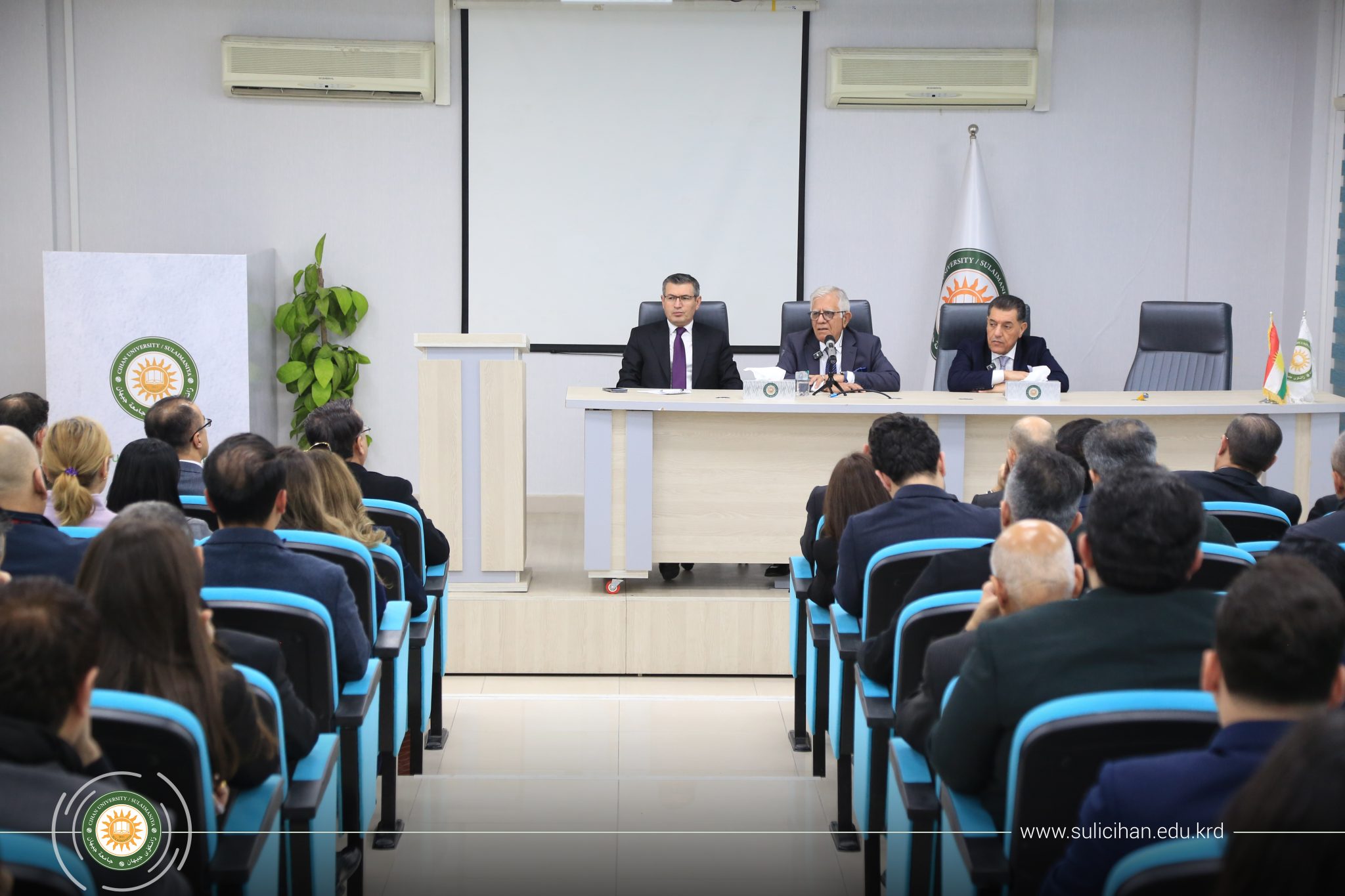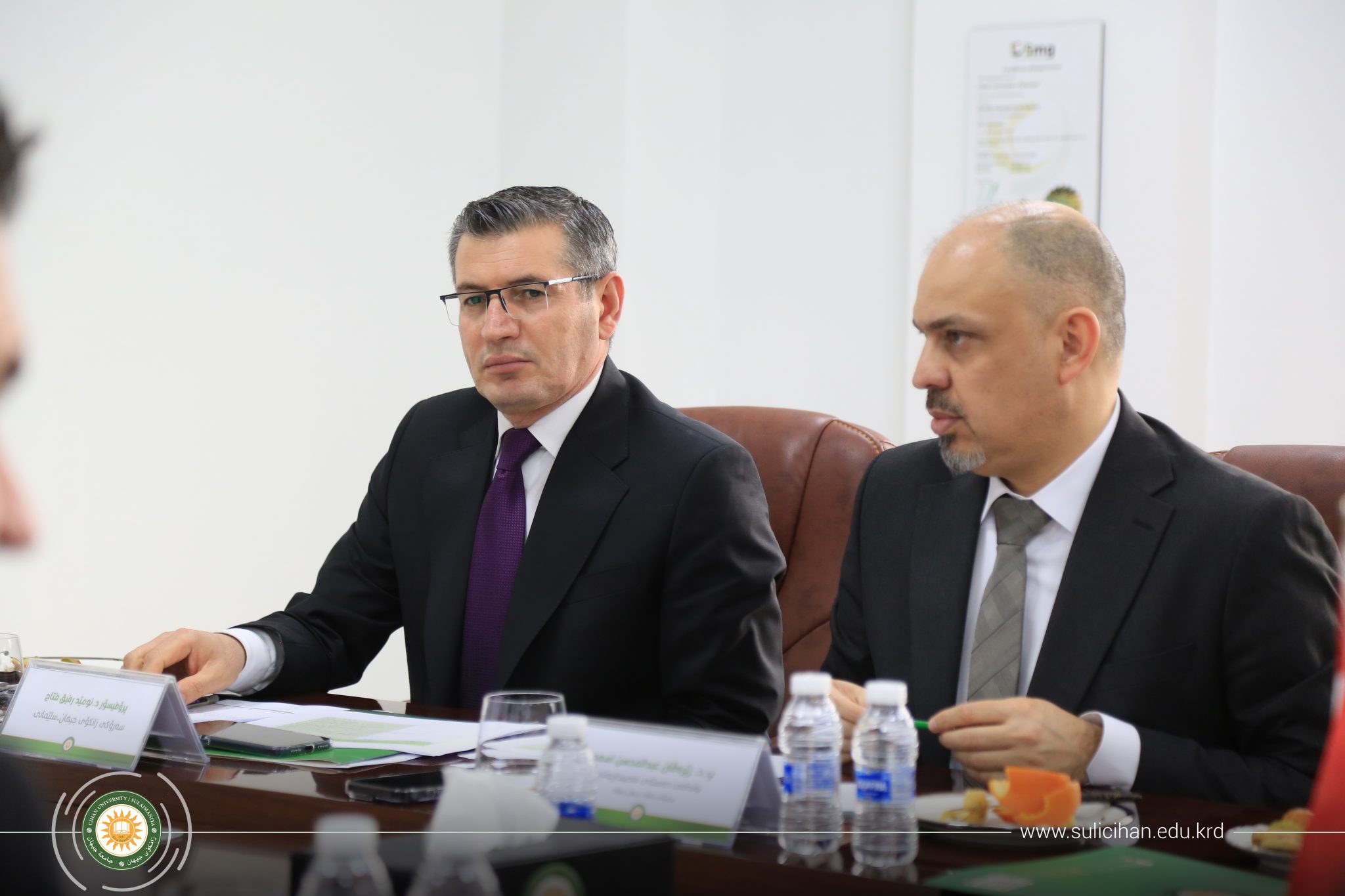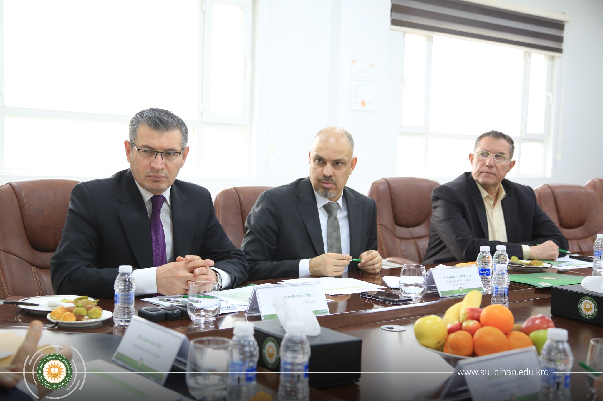 وفي ختام الاجتماع اجتمع رئيس مجلس الامناء مع مجلس الجامعة وجميع الكوادر الترييين في جامعة جيهان السليمانية.