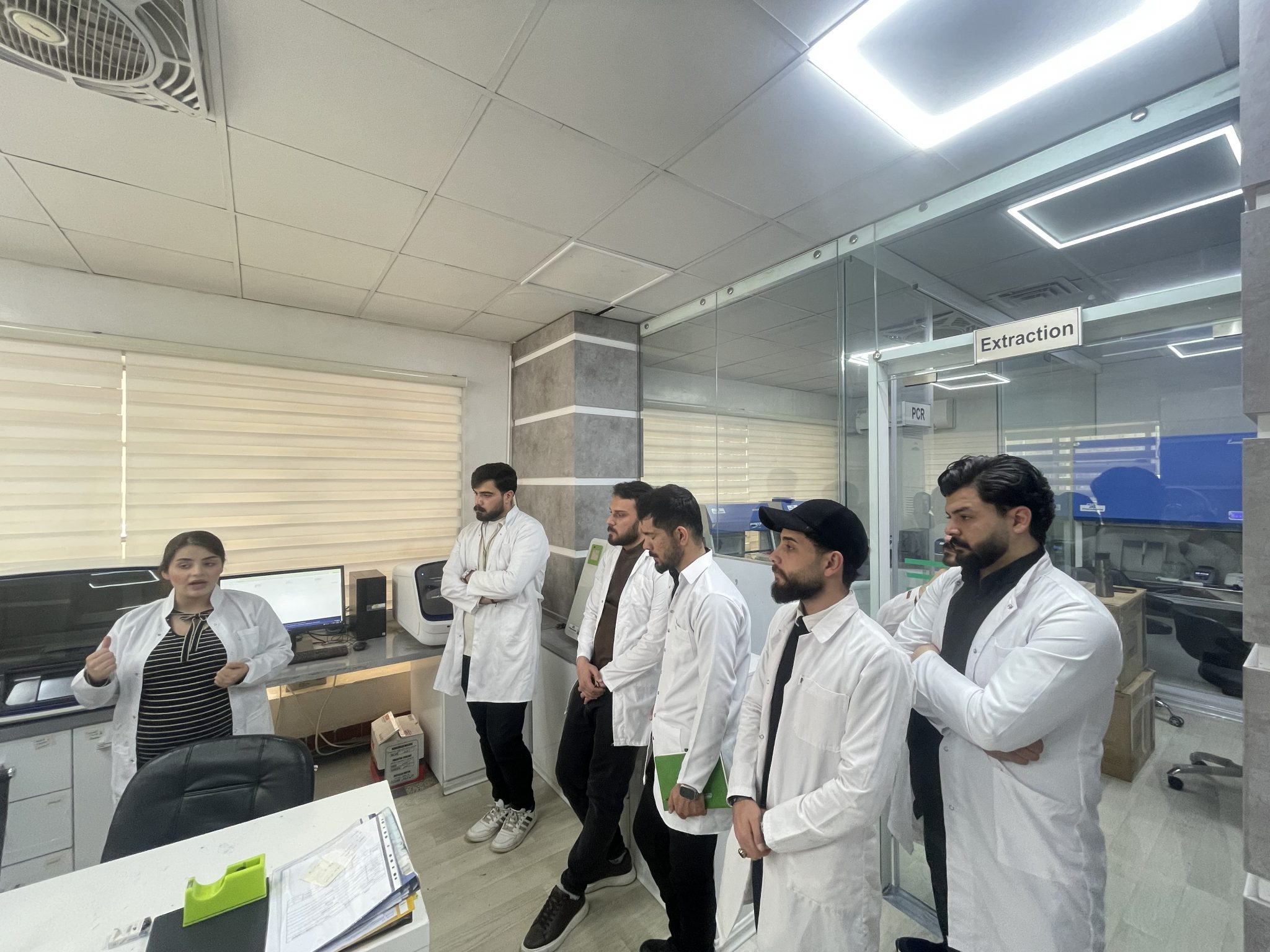 The visit was supervised by Asst. Lect. Chalak Najat Abdullah and Lab Assistant Sima Abdulrahman Qadir (MSc student). The primary objective was to enhance students’ practical understanding of advanced molecular and genetic diagnostic techniques.
